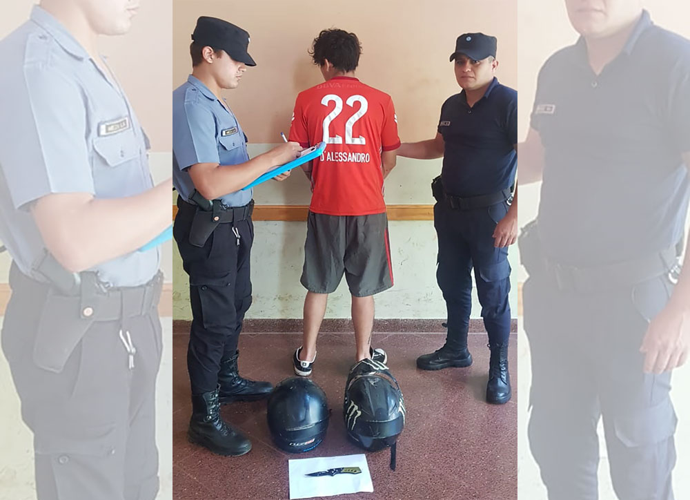 Una vez radicada la denuncia, efectivos de la Comisaría 4ª montaron un operativo para dar con el delincuente, logrando su aprehensión, además se incautaron dos cascos que tenía en su poder y la navaja utilizada para la comisión del ilícito.