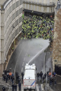 Al mismo tiempo, en la avenida de los Campos Elíseos, algunos chalecos amarillos incendiaron cestos de residuos y contenedores, a lo que la policía respondió desplazando a los manifestantes y con algunos arrestos esporádicos.