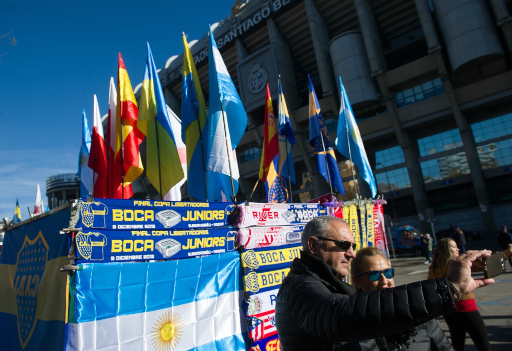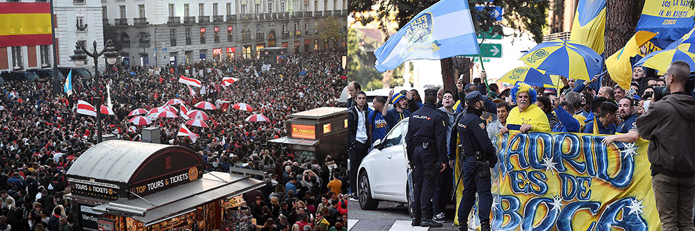 En la víspera de la superfinal de la Libertadores, los simpatizantes de River Plate y Boca Juniors le dieron un color diferente a las calles de Madrid.