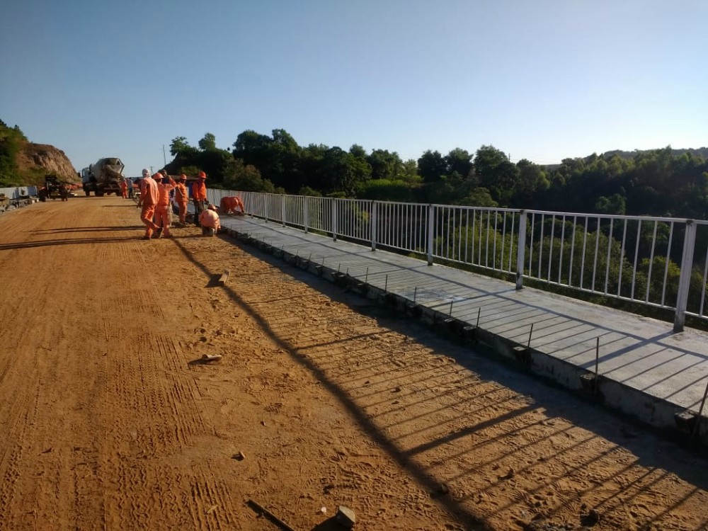La empresa que ejecuta el proyecto, se encuentra instalando barandas laterales metálicas de seguridad y construye veredas peatonales en ambos lados.