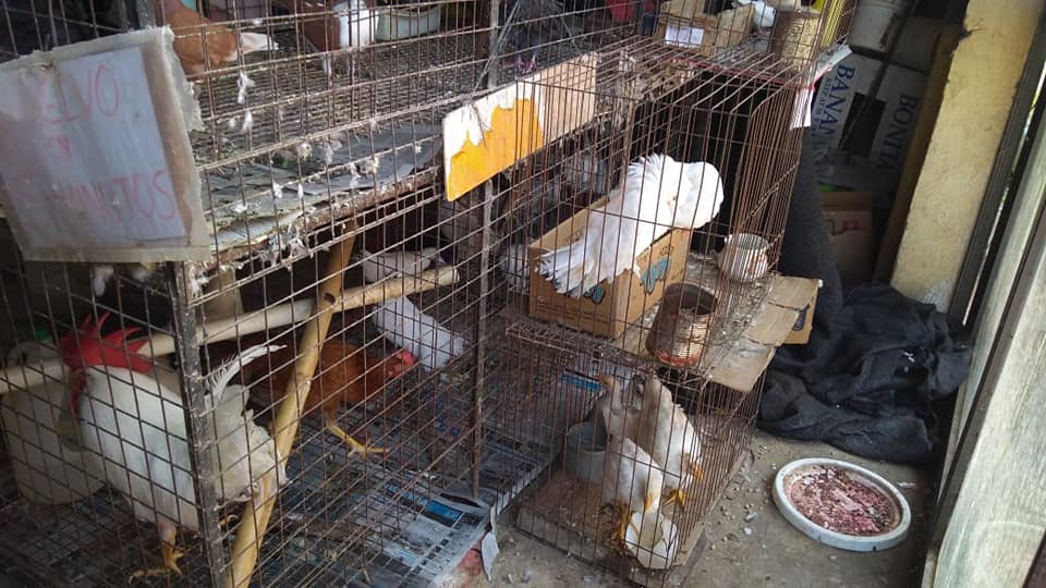 Vale resaltar que en el lugar se pudo constatar pájaros de distintas especies, patos, gansos, conejos y aves de corral y de granja enjaulados y hacinados.