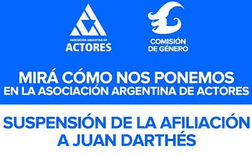 Mirá cómo nos ponemos en la Asociación Argentina de Actores: Suspensión de la afiliación a Juan Darthés. Comunicado en: https://t.co/tL5unzRR10 pic.twitter.com/nPY3QGFycd