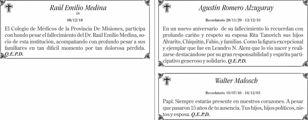 Fúnebres del domingo 16 de diciembre de 2018