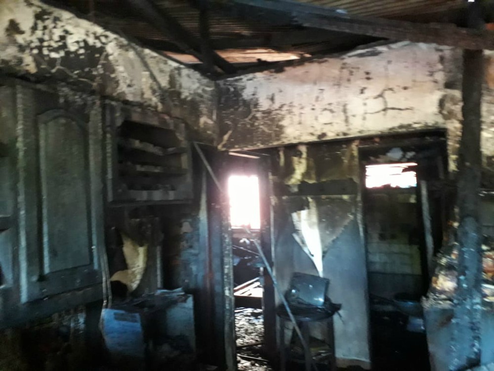 El fuego daño el 90% del inmueble y además se extendió al terreno lindante afectando el cielorraso de otra casa.