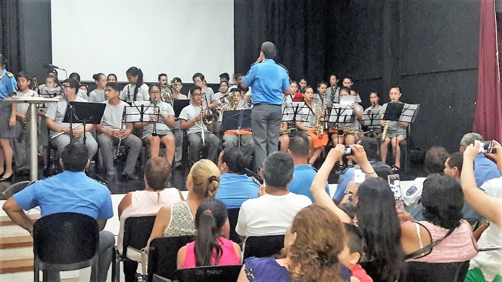 Minutos más tarde el público pudo deleitarse con tres temas musicales ejecutados por la Banda Infanto Juvenil, recibiendo los aplausos de los presentes y la notoria emoción de los familiares por el gran show.