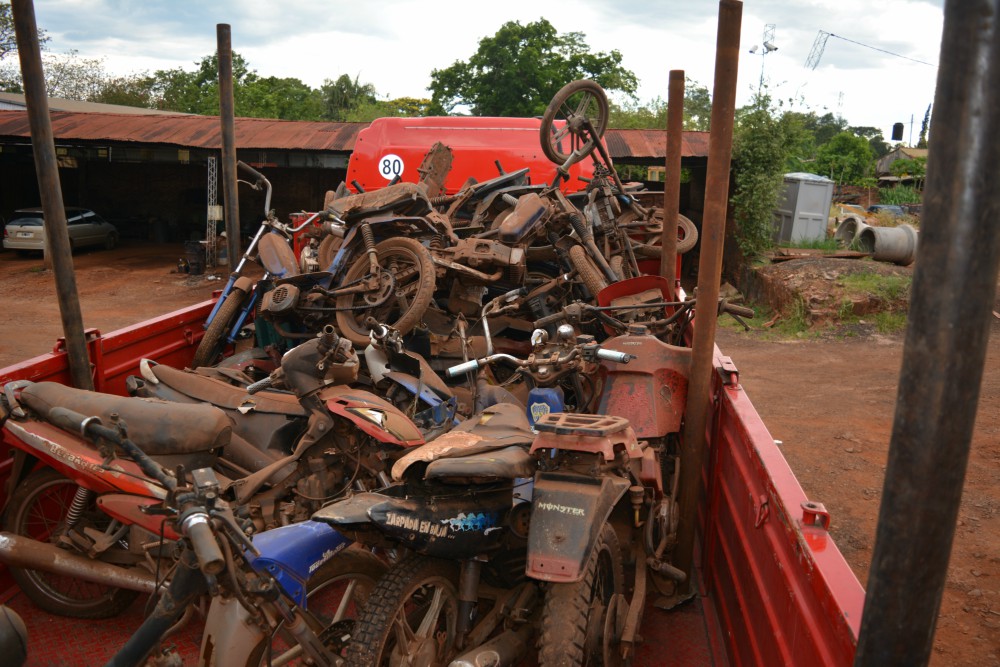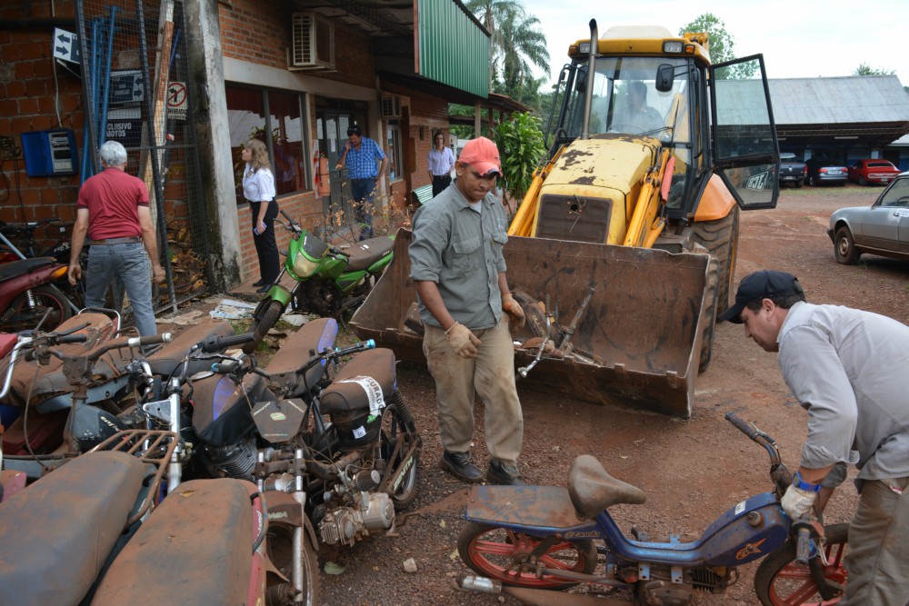 Durante la mañana de este martes, fueron retirados del Corralón municipal de Montecarlo 12 autos, una camioneta y 111 motos que llevaban abandonados en el lugar desde hace años y que fueron entregados a una empresa para su posterior compactación.