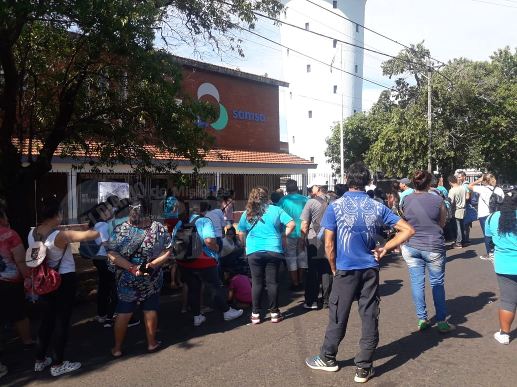 Comisiones vecinales, vecinos y referentes barriales protestan frente a SAMSA para exigir “que se resuelva de una vez por todas la problemática de los cortes de agua que en la mayoría de los casos “ya lleva varios años”.