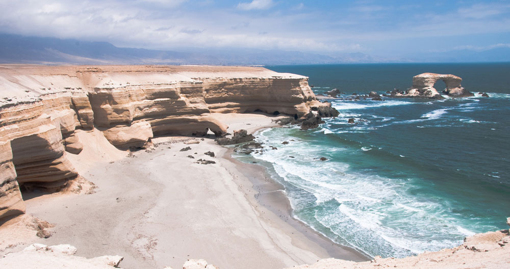 Localizada al norte de la ciudad, este monumento se emplaza en el medio del mar, convirtiéndose en uno de los atractivos preferidos por turistas. Situado 50 metros sobre el nivel del mar, este relieve conformado por rocas volcánicas que datan de hace más de cien millones, comprende una superficie de 31,27 hectáreas. La Portada debe su nombre a las transgresiones y regresiones del mar a causa del levantamiento de la plataforma marina, las cuales erosionaron la costa y el relieve. Ello provocó además lo que hoy es un increíble panorama visual, inserto en aguas que no son aptas para el baño. Puede ser apreciado desde un mirador que además ofrece servicios gastronómicos para los visitantes.