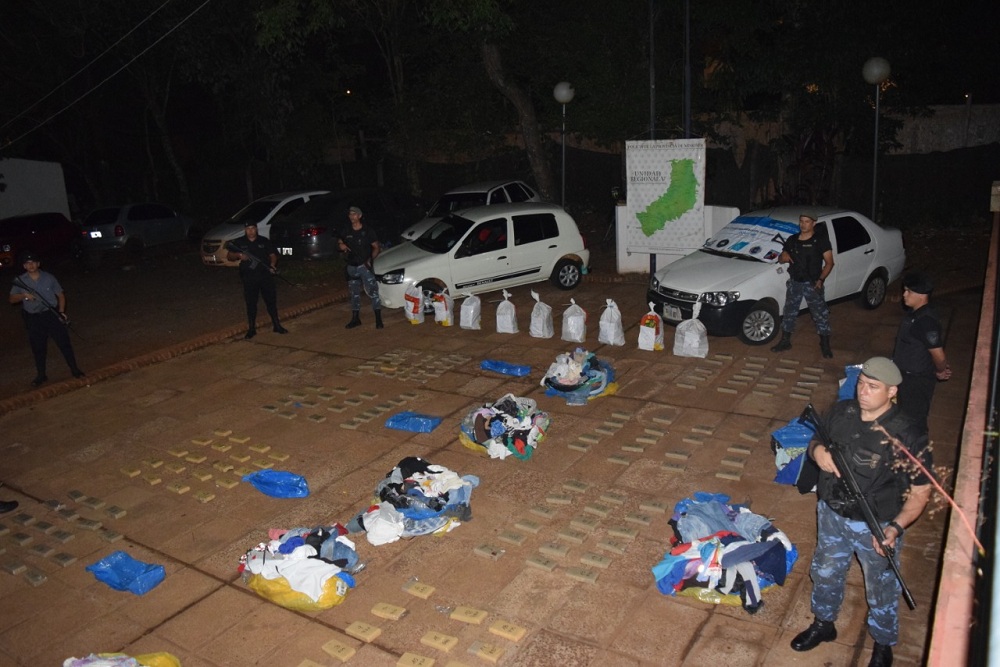 Los 331 panes (más de 238 kilos); los tres detenidos; los coches y otros elementos de interés fueron puestos a disposición del Juzgado Federal de Eldorado.