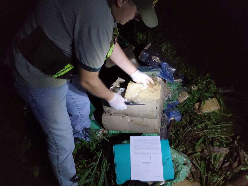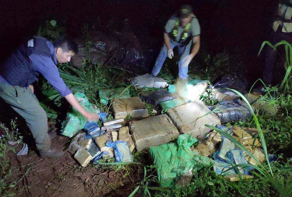 Personal del Escuadrón 10 “Eldorado” patrullaba la zona de “Toro Cuay” cuando vio rastros de un trillo en la espesura del monte que conducía a un montículo tapado por una lona. Al acercarse al lugar e inspeccionarlo, hallaron ocultos 16 bolsas.