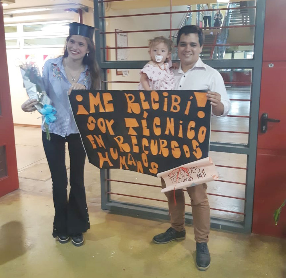 Emocionada hasta las lágrimas, a Melina no le salieron más palabras. Sólo atinó a decir !Sí! y aceptar la propuesta de matrimonio que, al concluir la carrera, le hiciera Marcos, con quien convive desde hace tres años, cuando supieron que estaban esperando un hijo. El “acontecimiento” se expandió por las redes sociales y a casi un mes de esta iniciativa, la pareja la recuerda entre risas, mientras planifica continuar con la licenciatura e ir preparando el casamiento, quizá para fines del año próximo.