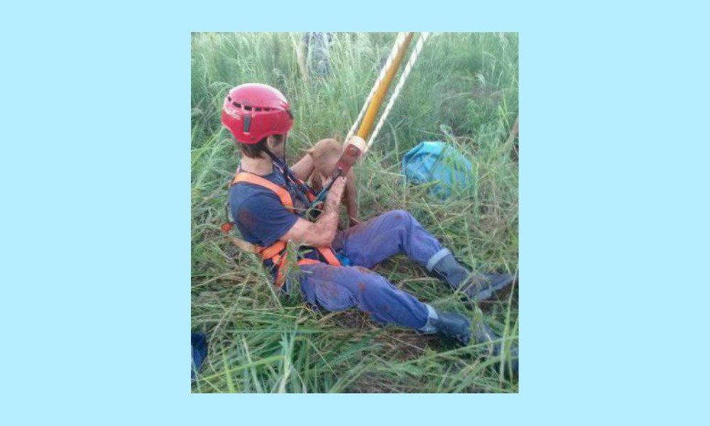 Cuatro bomberos voluntarios participaron en la extracción del animal, para lo cual fue necesario armar un trípode y anclajes de seguridad.