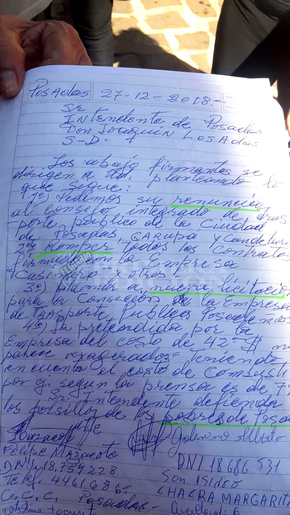 Entre los principales reclamos piden que el intendente Joaquín Losada “renuncie al Consejo Integrado de Transporte Público de la Ciudad, se rompan todos los contratos firmados con las prestatarias del servicio y se llame a una nueva licitación” para la concesión del mismo.