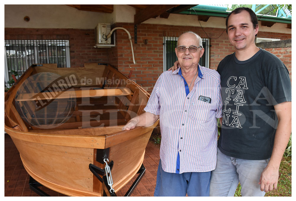 Su hijo Matías intenta seguir sus pasos y desde mediados de 2014 arrancó el trabajo conjunto. “Cuando empecé a trabajar con mi hijo, comenzaron a llover los pedidos al punto que muchas veces costaba cubrir todos. La mayoría son pedidos de pescadores de la zona. Aunque hay botes que se fueron al Paraguay y a otras provincias”, se jacta el mayor de los emprendedores, que también fue docente del Instituto Línea Cuchilla (ILC). “Un día le dije que cuando él no estuviera, me gustaría continuar. Y empezó a enseñarme”, acotó Matías, el quinto de seis hermanos (Marilín, Enzo, Patricia, Gerardo y Aldo, trompetista de RP 2000).