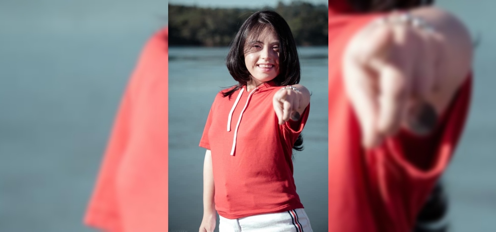 Julieta tiene 24 años y nació con síndrome de Down, una condición que no es un impedimento para cumplir el sueño que tiene desde chiquita porque frente a la cámara se desenvuelve como pez en el agua.