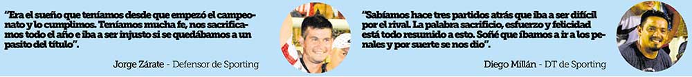 Allí, Jorge Maslovski se terminó erigiendo como la gran figura al contenerle los disparos a Millán y Strupsceki para desatar el alocado festejo de sus jugadores. Sporting tuvo altibajos en el torneo, pero una vez más demostró que no llegó a lo más alto de casualidad.