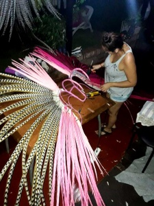 “Trabajamos todo el año en diseños de trajes, en el enredo, la samba y la batería con renovación de instrumentos, algo de plumas nuevas e insumos. Gracias a Dios con trajes casi todos terminados, ahora realizando espaldares y carrosas, trabajamos durante todo el año para llegar bien”, comentó.