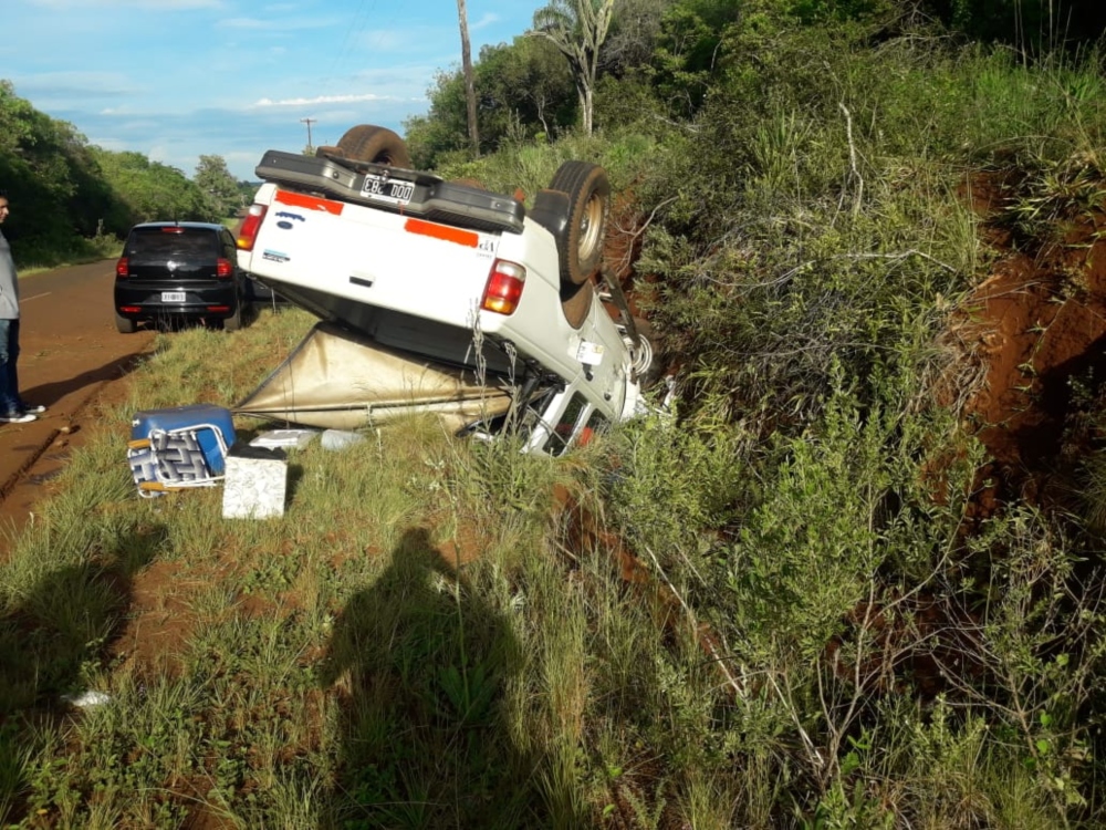 Cristian G. de 22 años perdió el control de la Ford Ranger con la que circulaba por calle Ex Ruta 14 y terminó volcando en un barranco.