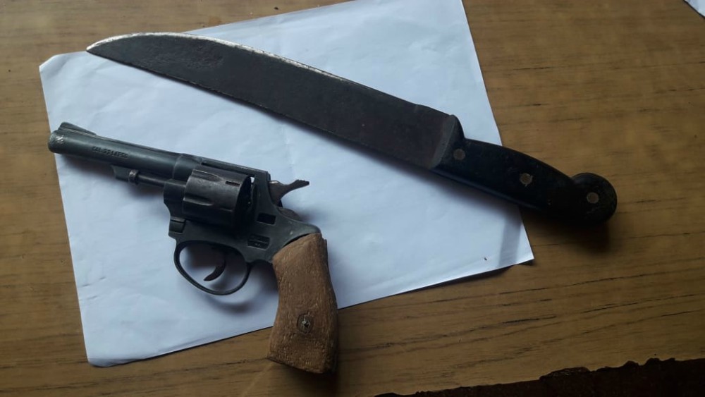 Entre sus pertenencias se incautó: 1 revólver calibre 38 y 1 cuchillo tipo machete.