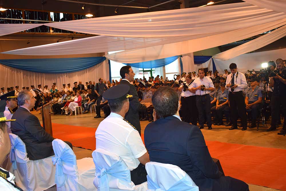 Antes del Gobernador, el jefe de la Policía Provincial, comisario general José Mazur destacó el valor de la tarea que desempeña cada integrante de la fuerza a su cargo y agradeció a los integrantes de sus familias, por la importante labor que realizan al acompañar a sus seres queridos.