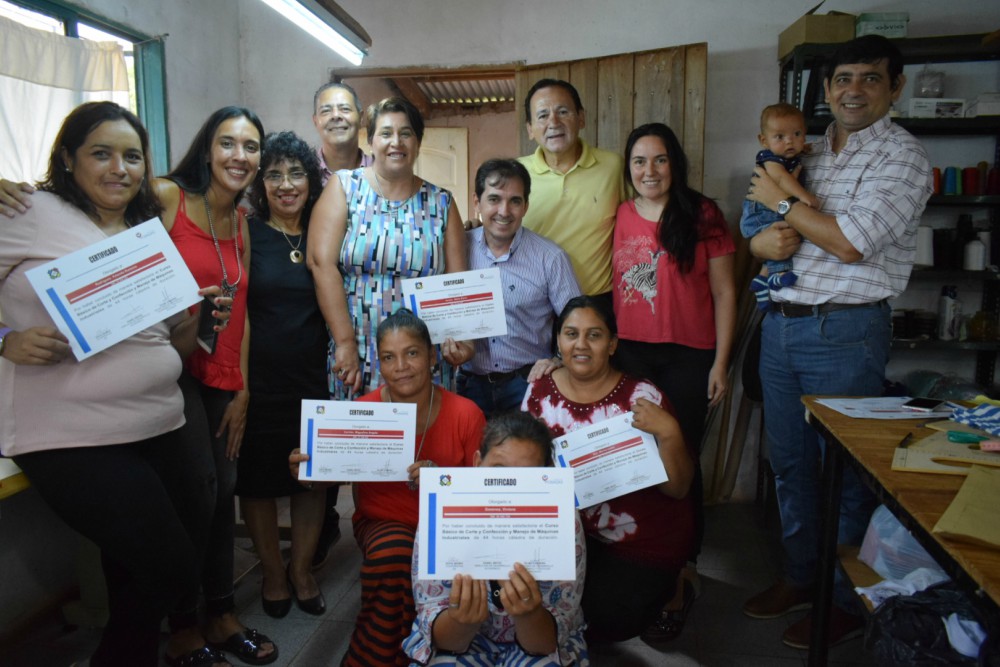 El intendente de Posadas, Joaquín Losada fue el encargado de entregar a las emprendedoras los certificados por haber finalizado el curso básico de corte y confección y de manejo de máquinas.