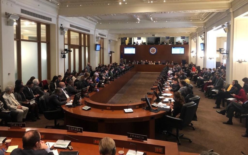 La resolución fue adoptada en votación dividida, en una reunión extraordinaria del Consejo Permanente de la OEA celebrada para debatir la iniciativa presentada por la Argentina, Chile, Colombia, Costa Rica, Estados Unidos, Perú y Paraguay.