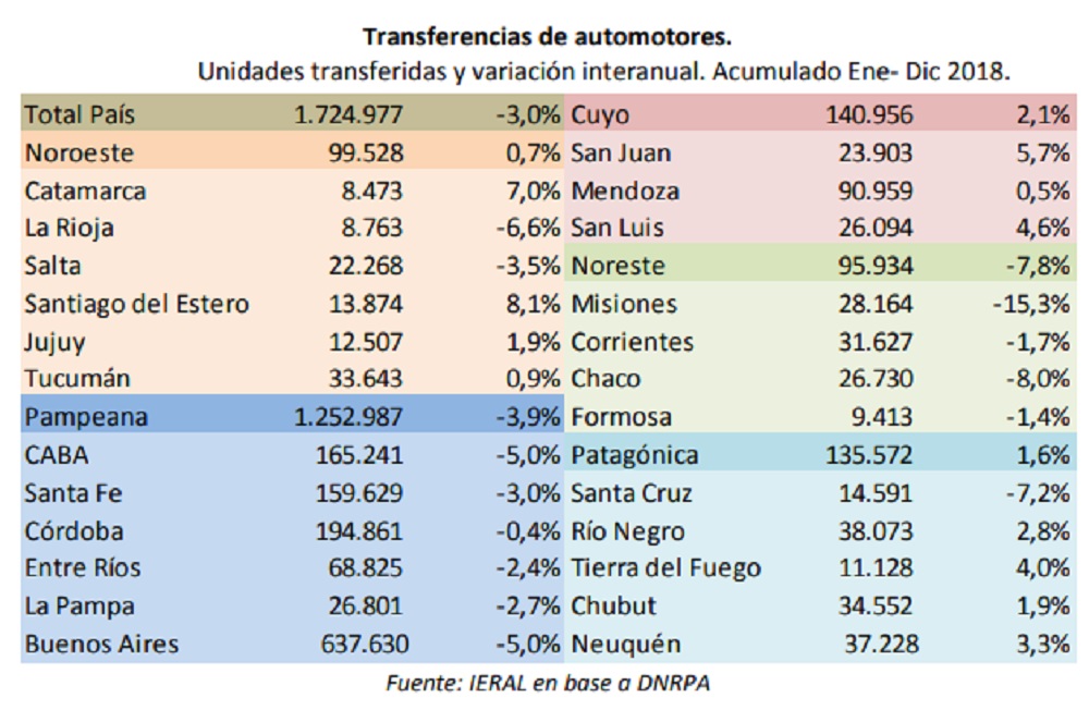De acuerdo a un reciente informe del Instituto de Estudios Económicos sobre la Realidad Argentina y Latinoamericana (IERAL) de la Fundación Mediterránea, elaborado por Vanessa Toselli y Lucía Iglesias, el año pasado se transfirieron a nivel nacional 53.072 automóviles usados menos que en el 2017.