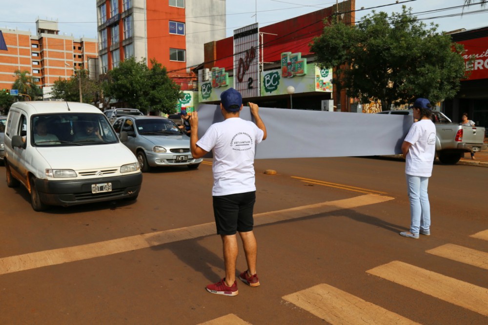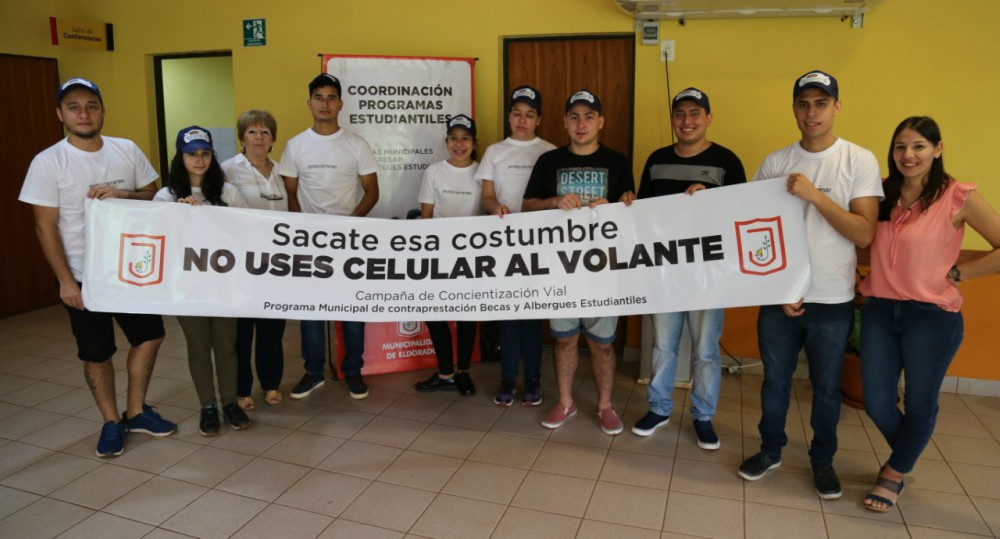 Alrededor de 60 jóvenes eldoradenses iniciaron durante la semana pasada una campaña de seguridad vial consistente en el despliegue de pancartas y el reparto de folletería en los puntos de mayor movimiento del tránsito en la Capital del Trabajo.