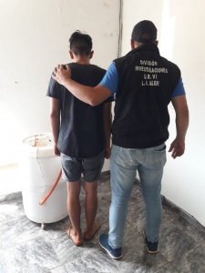 En horas de la mañana de este martes en el Paraje conocido como Km 37, efectivos de la División Investigaciones VI, detuvieron a Eduardo “Laio” F. de 18 años. El joven tendría relación con el robo denunciado el lunes por Norma B.