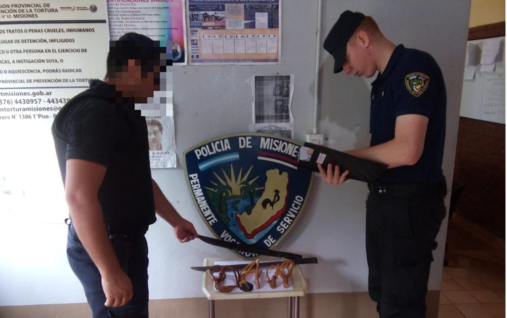 En un allanamiento ordenado por el Juzgado de Paz de A. del Valle, este viernes fueron detenidos Marcelo L. (20), Alberto L. (24), Oscar DS. (21) y dos menores de 15 y 16 años. Además se procedió al secuestro de 3 gomeras de fabricación casera y 2 machetes.