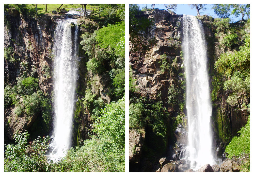 A sus más de cuarenta metros de altura suma una preciosa vista al valle y una escalera desciende por la ladera para llegar a sus pies, lo que permite disfrutar de la caída y el gran paredón de piedra en su totalidad.