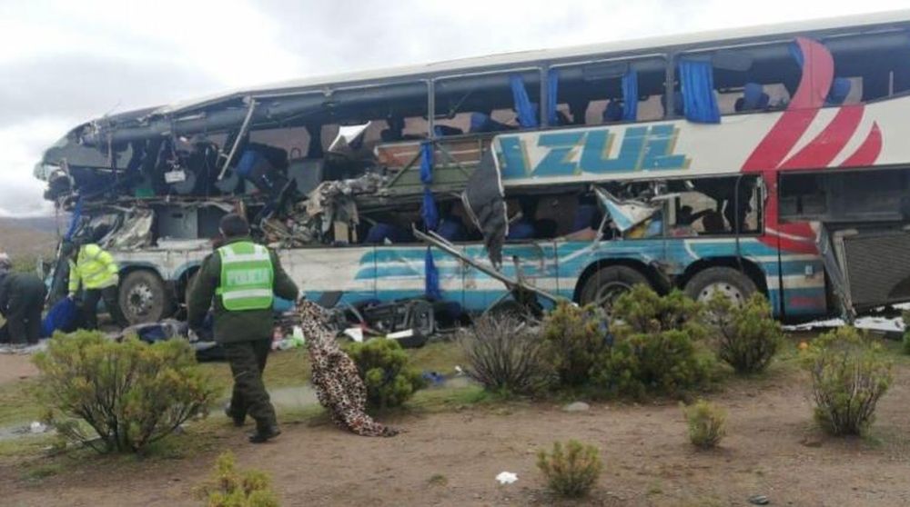 Este sábado, al menos 22 personas murieron y otras 30 resultaron heridas en un choque frontal de autocares cerca de la localidad de Challapata, en la carretera que une las regiones de Oruro y Potosí.