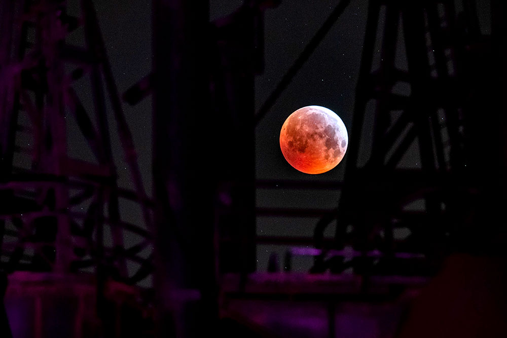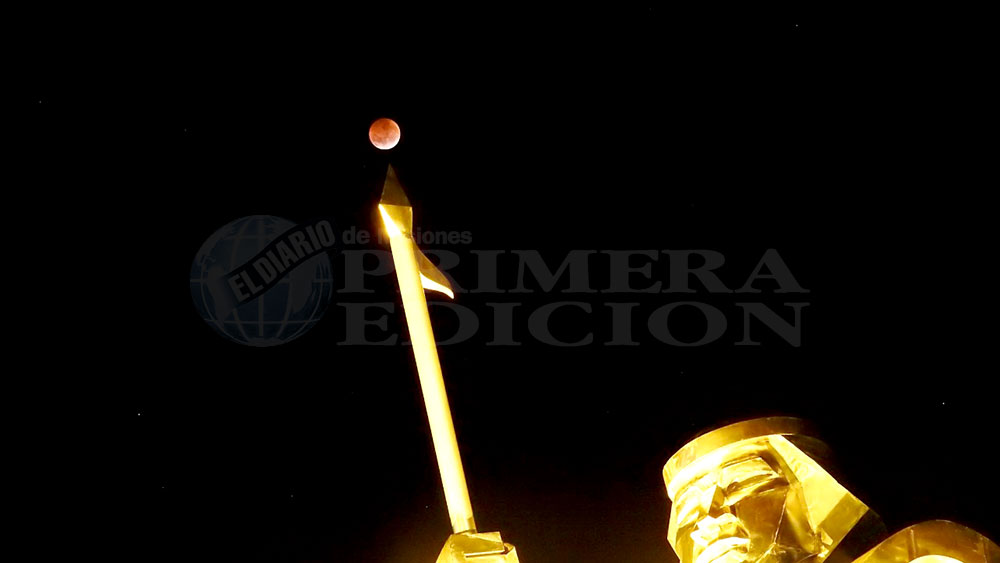 El inicio del eclipse fue registrado aquí a las 23.37 del domingo, entre la 1.41 de hoy y las 2.43 se mantuvo en el cono de sombras, y a las 2:12 pudo observarse la mayor tonalidad rojiza.
