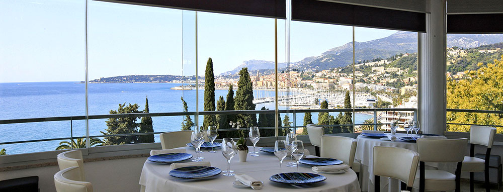 Su ubicación en la Costa Azul le permite confeccionar sus menús a partir de lo que ofrece el mar y la montaña de ambos lados de la frontera, aunque reivindica asimismo el papel preponderante de las verduras y frutas que cultiva en su huerto, donde crecen menta, cebollino, salvia, y ajenjo, a la sombra de los naranjos.
