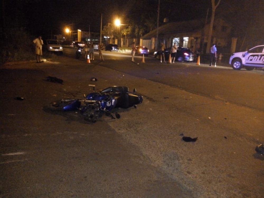 Por causas que se tratan de establecer colisionaron una moto Honda Invicta y un automóvil VW Gol. En la moto circulaba Ramón Héctor Olivera junto a Claudia D. y en el auto viajaba una mujer de 38 años identificada como María O. junto a su hija de 12 años.