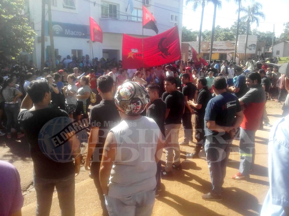 Organizaciones sociales y vecinos de distintos barrios se manifiestan frente a la Municipalidad de Garupá para expresar su reclamo en contra de los tarifazos en los servicios públicos con el agravante de los reiterados cortes del suministro de agua potable en la localidad. Desde el municipio, en tanto, advierten que hay grupos violentos que instigan la toma del edifico municipal haciendo apología del delito.