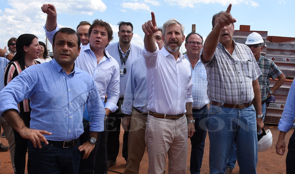 Bajo un agobiante calor y en plena siesta misionera, esta tarde el ministro del Interior y Obras Públicas de la Nación, Rogelio Frigerio realizó una fugaz visita a la capital misionera, donde en compañía del vicegobernador Oscar Herrera Ahuad, autoridades de la subsecretaria de Obras y Servicios Públicos de la Provincia, de la Dirección Nacional de Migraciones (DNM), de la Entidad Binacional Yacyretá (EBY) y de la empresa constructora ,visitó las obras del Centro de Frontera, que se lleva adelante en la cabecera del Puente Internacional Posadas (Argentina) – Encarnación Paraguay).