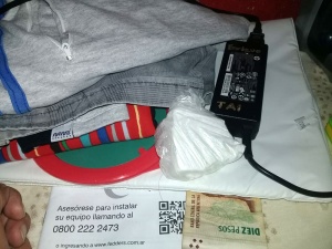 Dentro de la casa incautaron trozos de cocaína (112 gramos); más de 15 mil pesos en efectivo, una balanza de precisión y 50 bolsas de polietileno que presuntamente serían utilizadas para la venta fraccionada de la droga, además fueron incautados varios celulares y otros elementos.