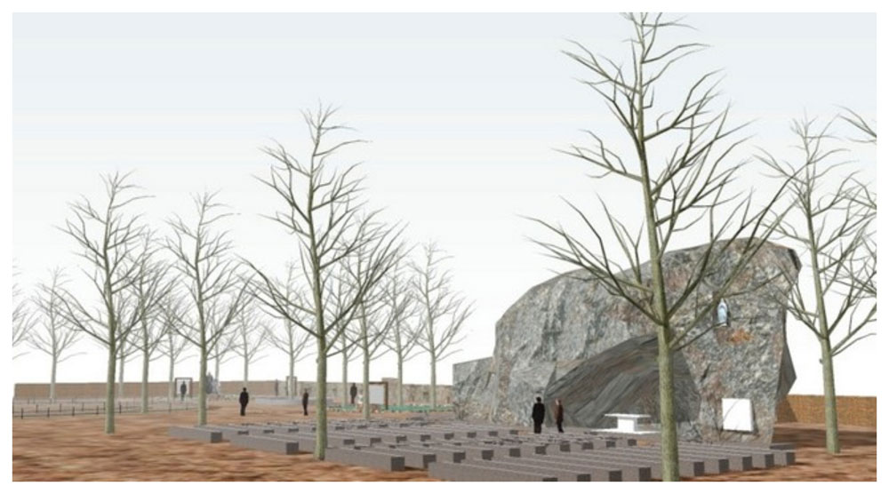 También se emplazarán canteros con vegetación frondosa acompañados por numerosas esculturas que representarán la Familia de la Santa.