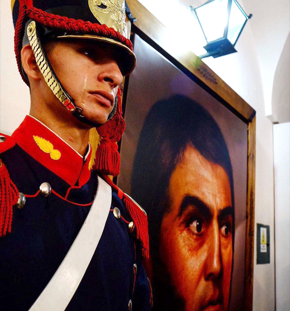 Durante la jornada de hoy se hizo viral la foto de uno de nuestros Granaderos emocionado junto al cuadro del Libertador.