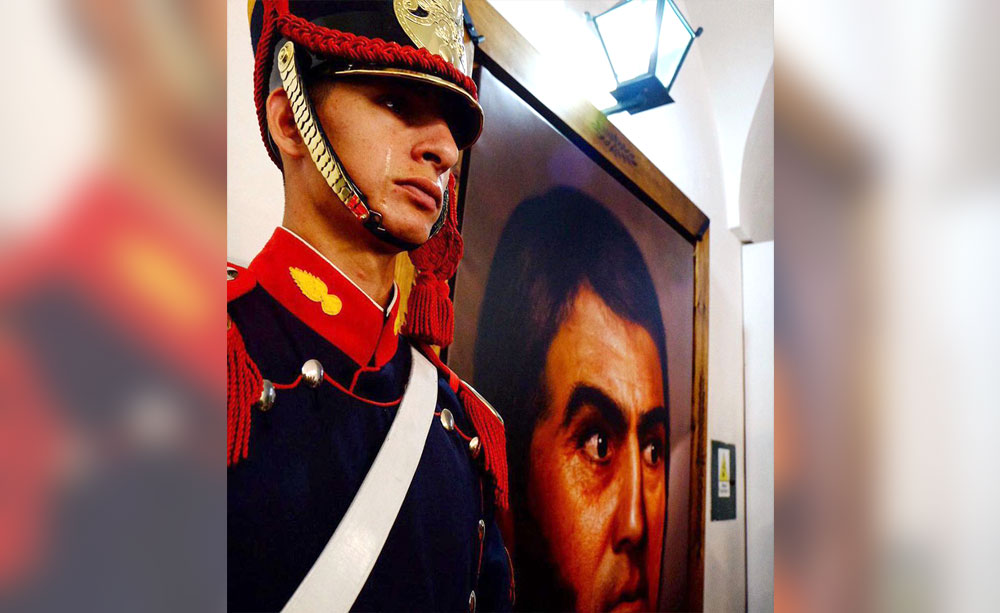 Una foto que mostraba a un integrante de los Granaderos a Caballo con una lágrima que atravesaba una de sus mejillas, mientras custodiaba un retrato del General José de San Martín, emocionó a muchos en todo el país. El protagonista de esta imagen es un misionero, Darío Benítez.