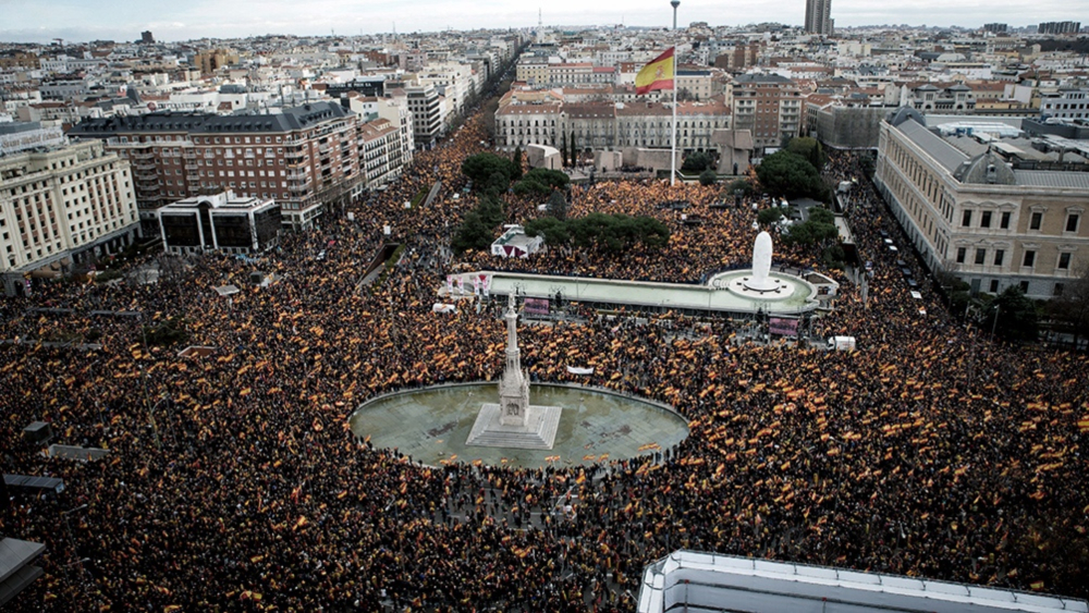 La protesta fue convocada por dos principales fuerzas de derecha de España, Partido Popular (PP) y Ciudadanos, y por la de ultraderecha, Vox.