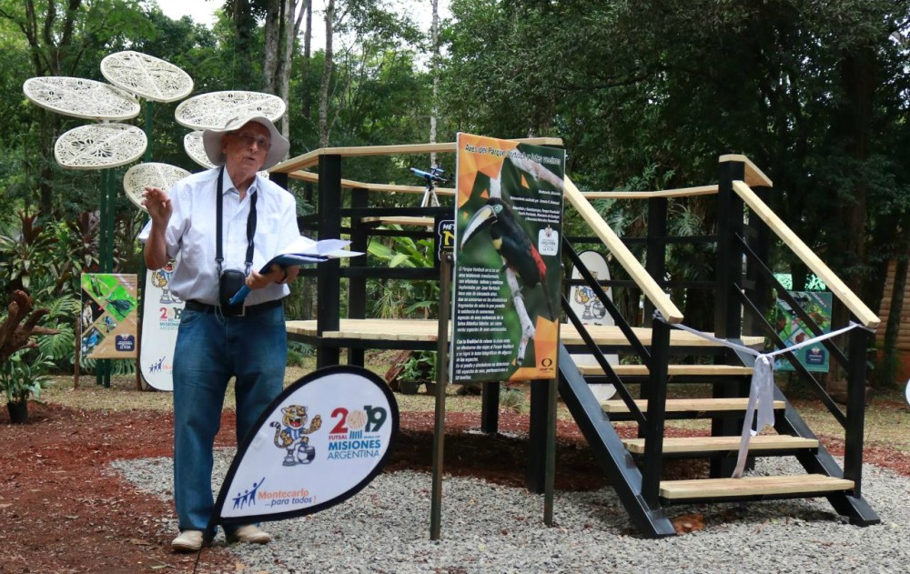 “Es una estructura en donde todos los visitantes podrán acercarse y, con unos binoculares, dentro de un circuito de interpretación, aprenderán un poco más de lo que es la rica fauna que tiene nuestra provincia, que en materia de aves tiene más del 50% de especies registradas del país”, explicó el ministro de Ecología de Misiones, Juan Manuel Díaz, acompañado en la ocasión por su par de Turismo, José María Arrúa, el diputado provincial Julio César Barreto y el intendente local, Jorge Lovato.