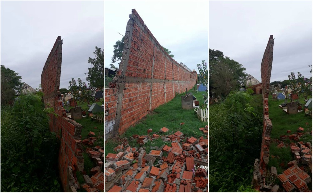 El viento desatado en las últimas horas del lunes en Puerto Iguazú, acompañado de una breve pero intensa lluvia, provocó algunos daños materiales en la localidad, especialmente en un muro contiguo al cementerio El Salvador, que sufrió un derrumbe parcial y lo dejó al borde del colapso.
