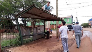 Otra infraestructura que sufrió los embates del viento entre las últimas horas del lunes y las primeras de ayer fue el refugio de la parada de colectivos sobre la avenida República Argentina casi Papa Francisco, cuyos hierros quedaron vencidos, retorcidos y a punto de caer también sobre los eventuales usuarios.