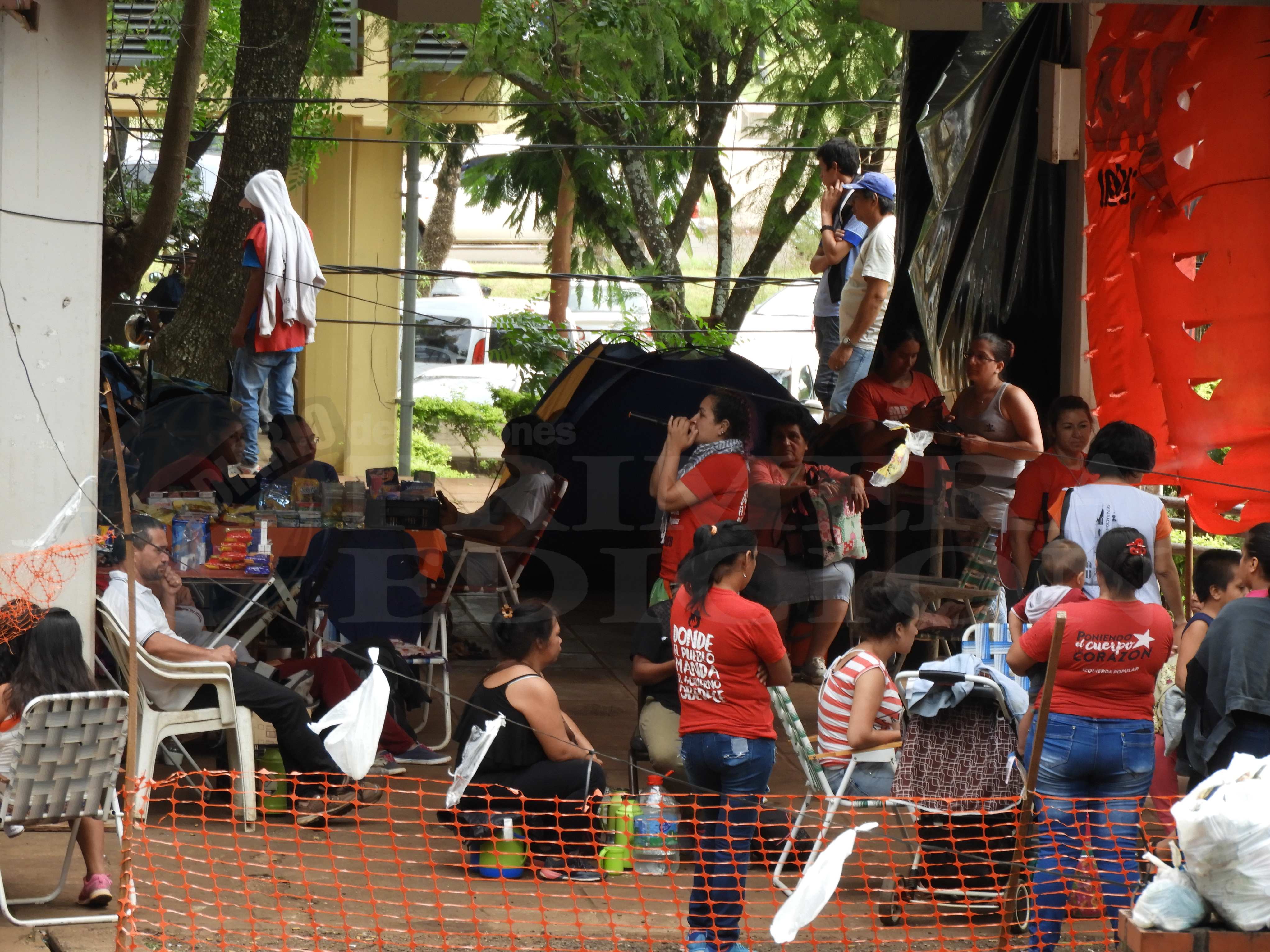 En Posadas, integrantes del Polo Obrero acompañan el acampe que mantiene el Movimiento Popular La Dignidad, frente a la sede del Ministerio de Desarrollo Social de la provincia, en el Centro Cívico.