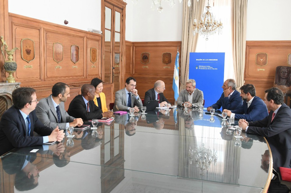 El ministro del Interior encabezó el encuentro al que asistió el secretario de Provincias Alejandro Caldarelli, el subsecretario de Relaciones con las Provincias y Municipios, Paulino Caballero y los técnicos del organismo Paolo Dudine, Joyce Wong, Federico Amui y Dmitry Plotnikov.