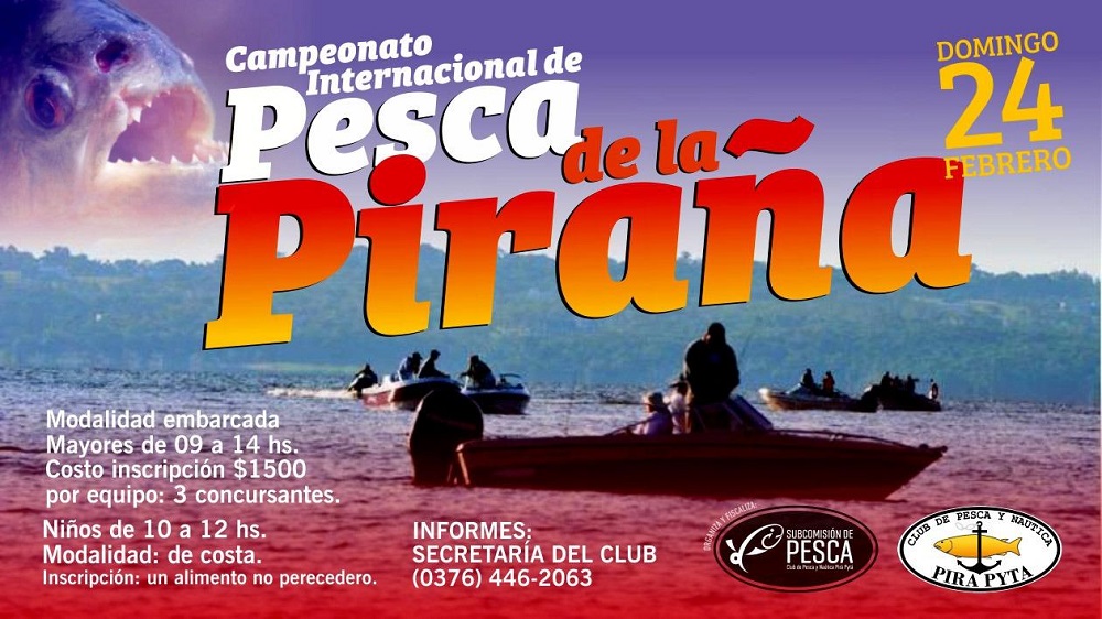 Se trata del tradicional campeonato internacional “Pesca de la Piraña”, que se llevará a cabo en la zona de desembocadura del arroyo Itaembé, sobre el río Paraná.