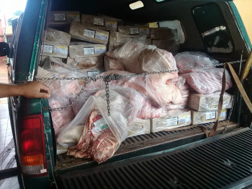 Al revisar la carrocería de la camioneta observaron una gran cantidad de carne aviar y porcina que aparentemente había sido ingresada desde Brasil sin el correspondiente aval aduanero y cadena de frío.