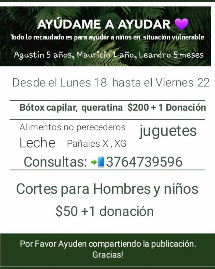 “Mi marido es peluquero y yo hago tratamientos capilares y tuvimos la iniciativa de aportar lo que sabemos para que superen ésta situación porque necesitan los elementos solicitados de forma urgente”.